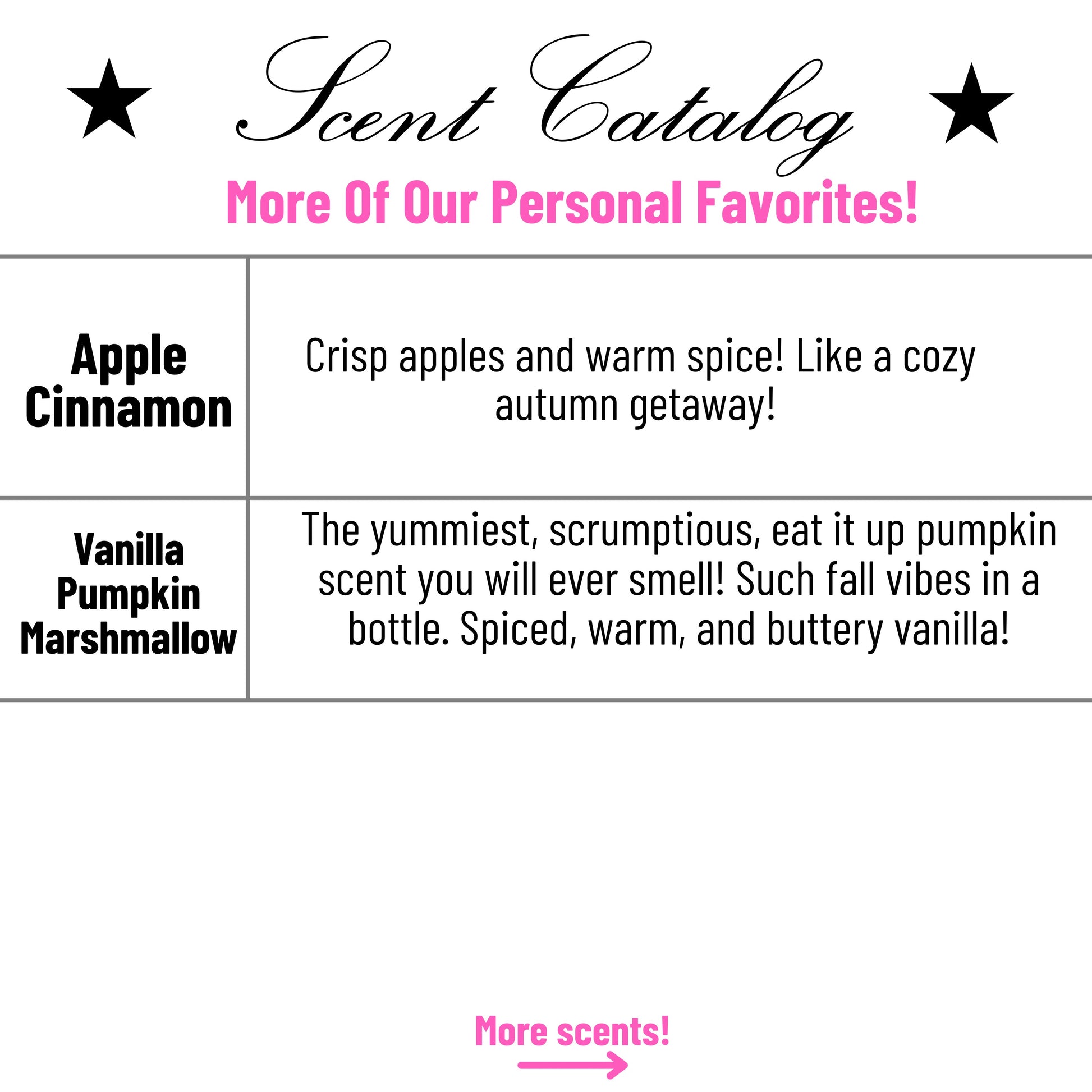 Vanilla Pumpkin Marshmallow - The yummiest, scrumptious, eat it up pumpkin scent you will ever smell! Such fall vibes in a bottle. Spiced, warm, and buttery vanilla.